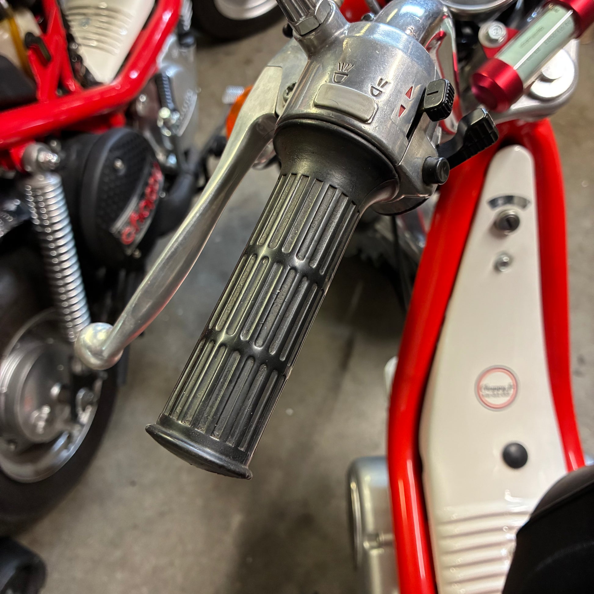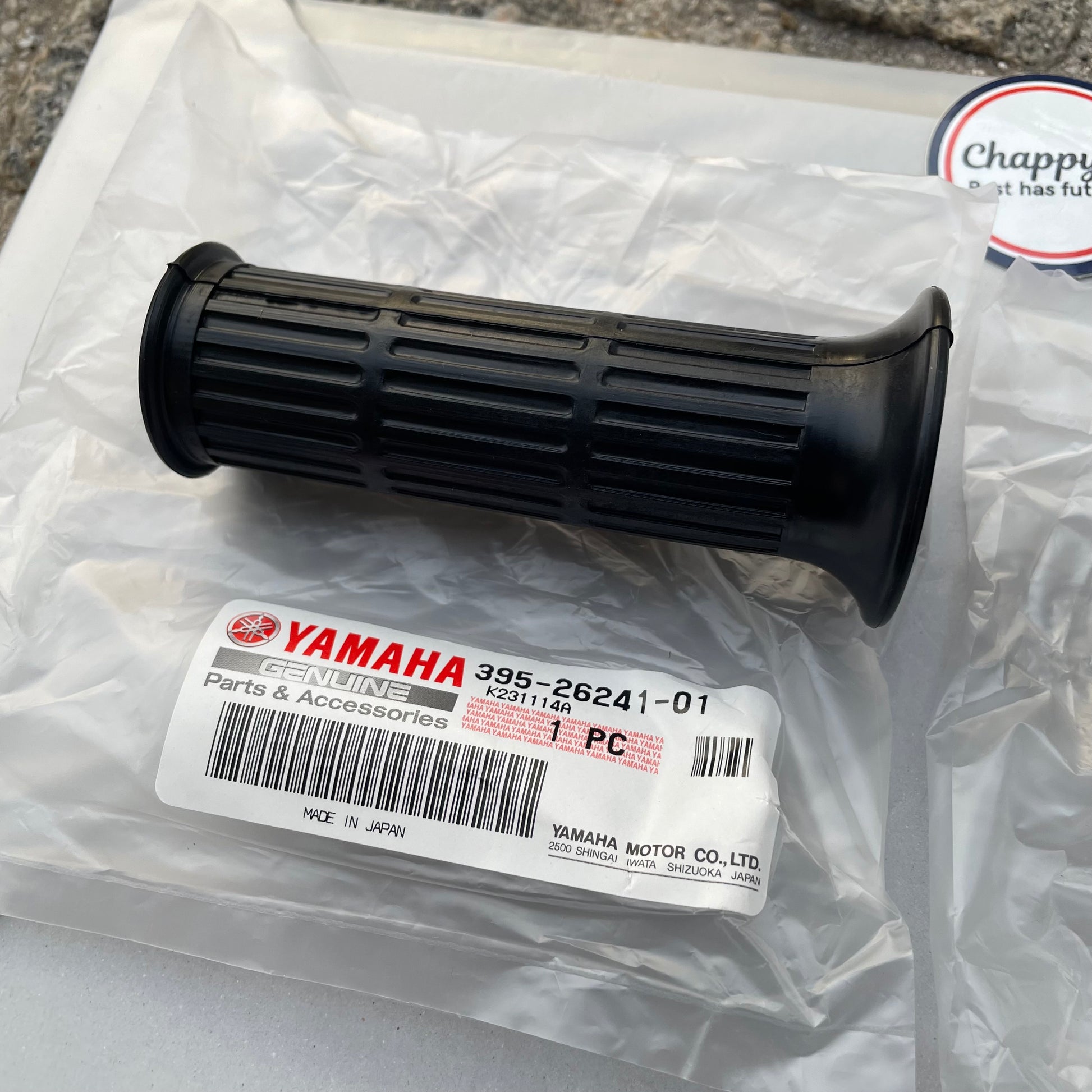 Left handlebar grip, it is a little narrower than the left as it slides directly onto the chrome handlebar.